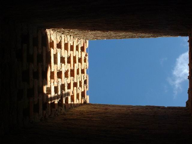 The VSBK, as we have already said, use coal to burn the bricks. The coal is placed between the bricks for them to burn. One question we have not answer yet is how they start the fire with coal. A basic function of this kiln is that it allows the load and unloads of bricks while it is still burning. The bricks are unloaded in the bottom and loaded in the top. All the bricks are placed one on top of the other in layers of four rows each. The first row you must leave a space to place the metal beams that will support the rest of the column while you unload the burnt bricks.The interesting thing is that the brick column has to be supported by a metal base (which never should get hot) that moves up and down and has several metal beams that support part of the column while the metal base goes down just to let unload five rows of bricks. The metal base then is lifted up again and reloaded (in the top) with bricks and charcoal. The metal beams are removed. This is how the VSBK functions in very few words.