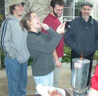 | Split pea soup was cooked in a pan on a turbo | Tom Reed explained and demonstrated Principles of gasification | Flame type and color was discussed |