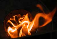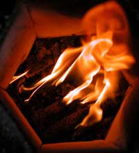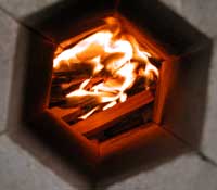 | Here is a self feeding stove for sticks | and an idea for a self feeder for bulk fuels like hulls, husks or sawdust | small sticks are constantly fed for good control |