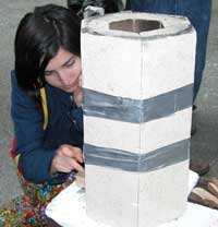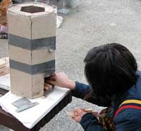 | Modular stove segments were cut and cast | permitting rapid prototyping like a rocket chamber built to the stack dimensions of Prasad (1991) | or fit with a skirt to accept a pot |