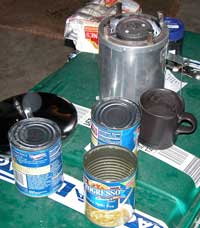 | Foods included beans brought to boil in a pot then | kept in a quilt (or "haybox") for an hour | and sampled by everyone |